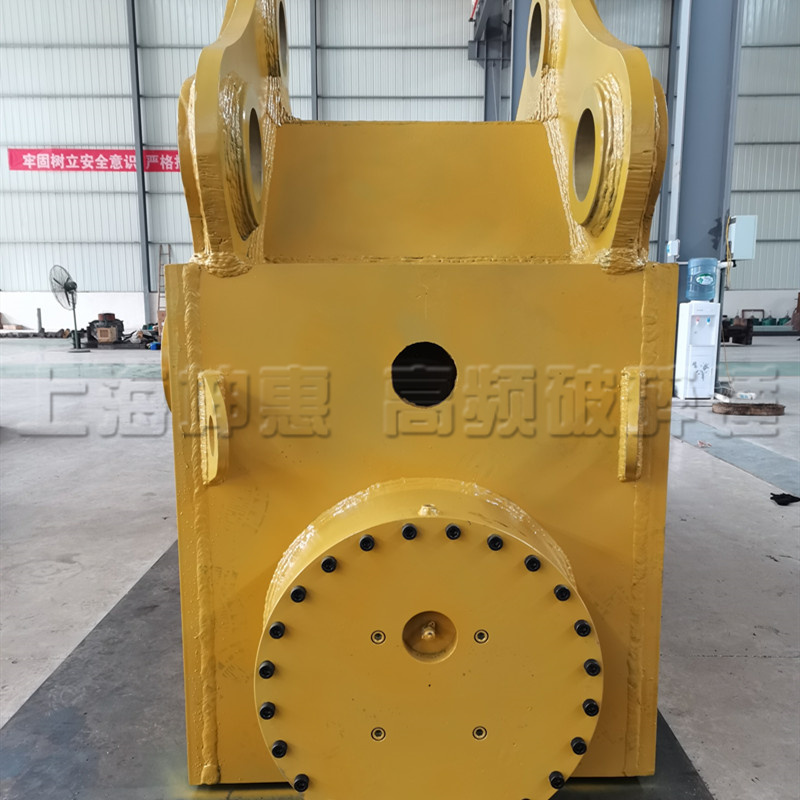 高頻破碎錘作為一種破碎工具,主要利用高速運(yùn)轉(zhuǎn)產(chǎn)生的破壞力,使目標(biāo)破壞物產(chǎn)生半液化的狀態(tài)來(lái)進(jìn)行破壞的。把挖掘機(jī)的液壓能量傳遞到液壓馬達(dá)上,馬達(dá)帶動(dòng)振動(dòng)盒內(nèi)的偏心齒輪轉(zhuǎn)動(dòng),產(chǎn)生離心力,然后通過(guò)激振盒將振動(dòng)傳到斗齒上,從而完成破碎作業(yè)的一個(gè)過(guò)程。